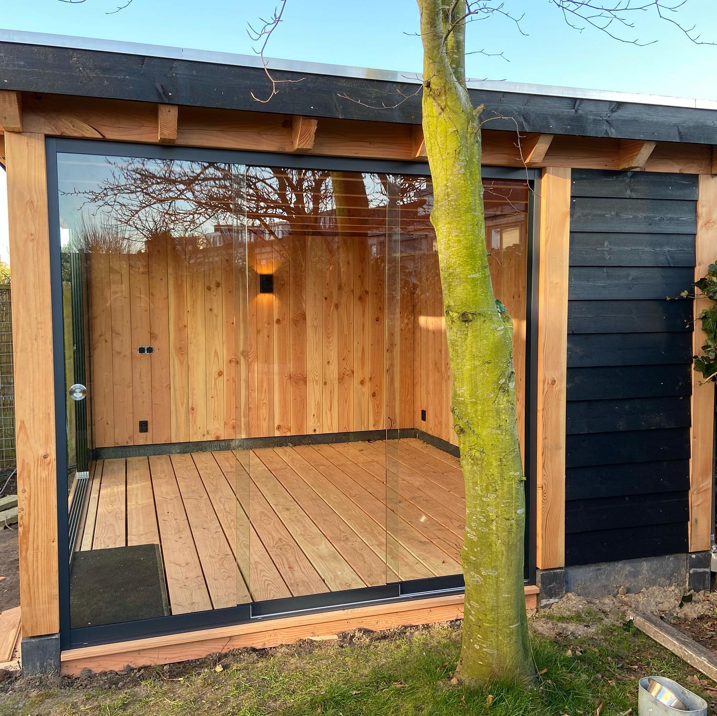 Deze mooie tuinkamer recent opgeleverd! Dit keer met glazen schuifdeuren om zo lang mogelijk van de tuin te kunnen genieten. Ook op zoek naar een buitenverblijf op maat? Of op zoek naar glazen schuifwanden in uw bestaande buitenverblijf? Laat het ons weten via